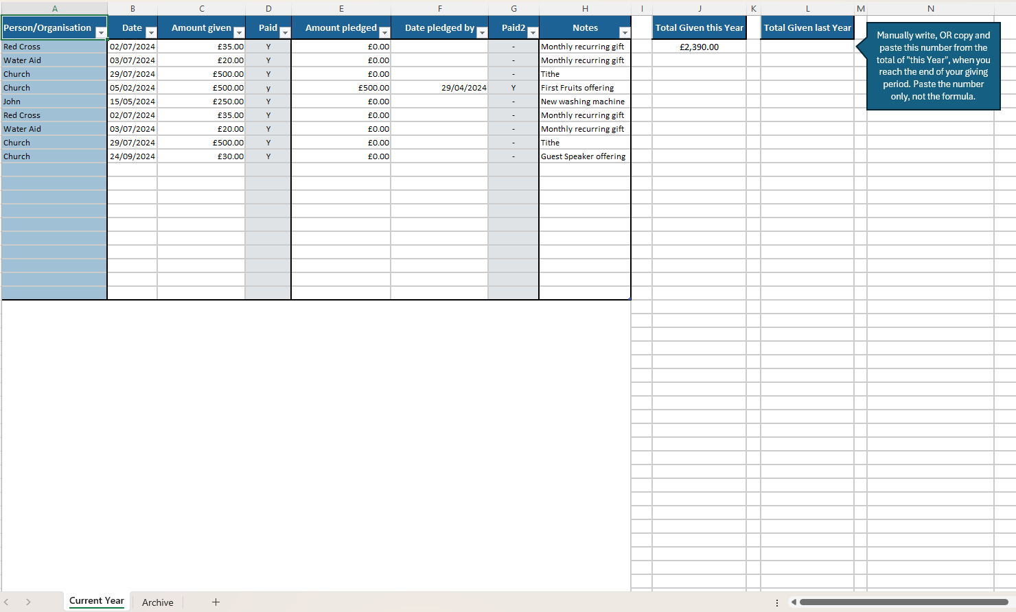 Track your giving for Tax returns