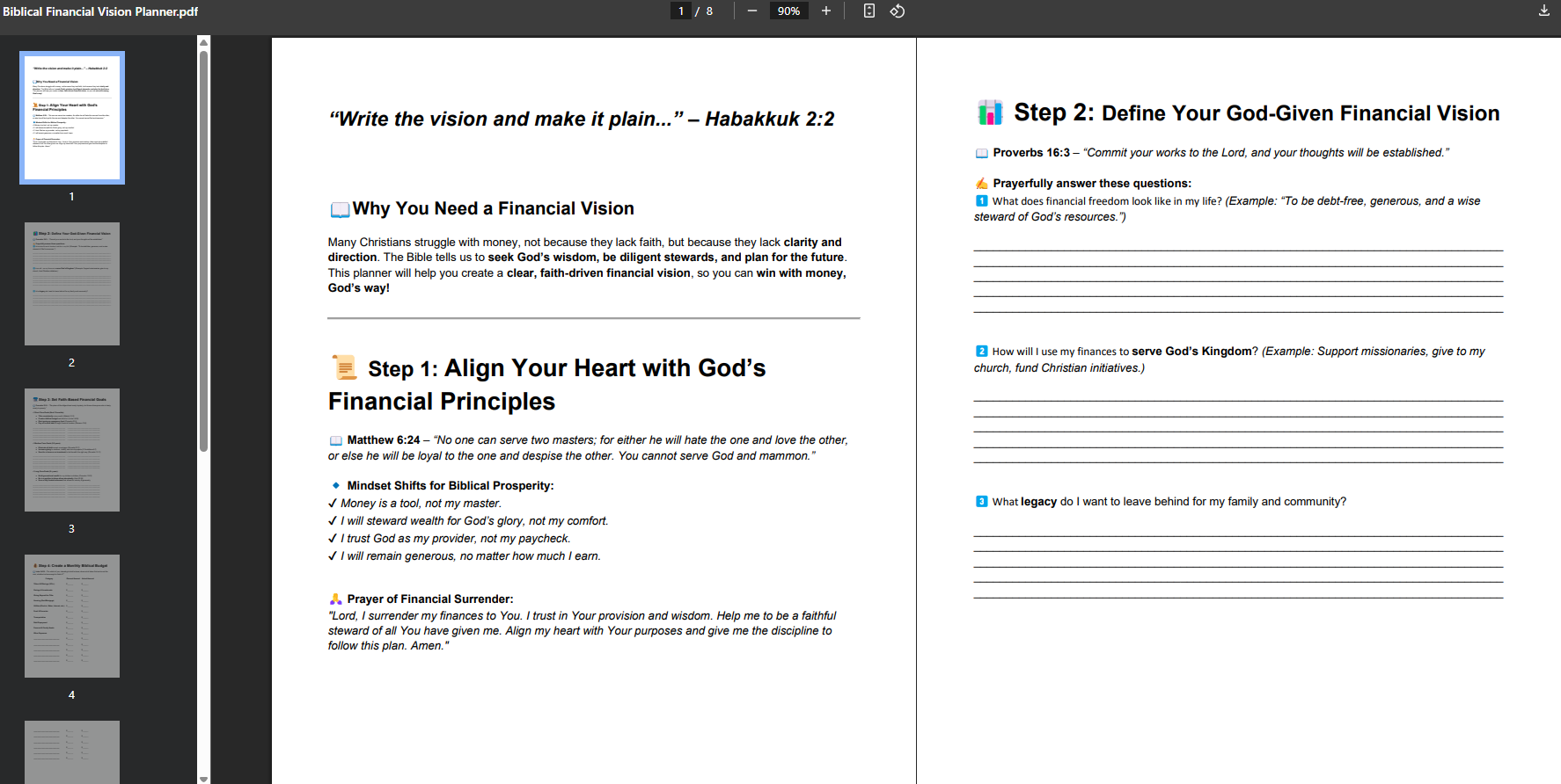 7 Pages of Bible-Based Vision planning, to radically change your future